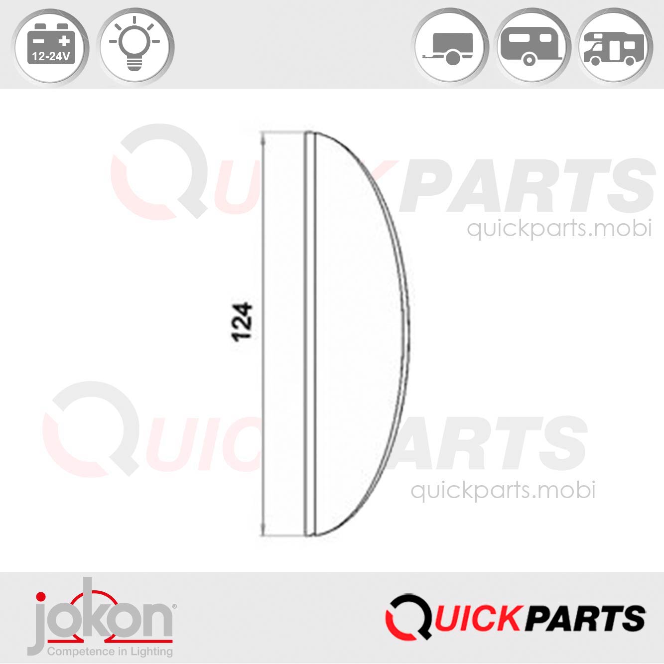 - Ampoule dôme 12 ou 24V, non incluse